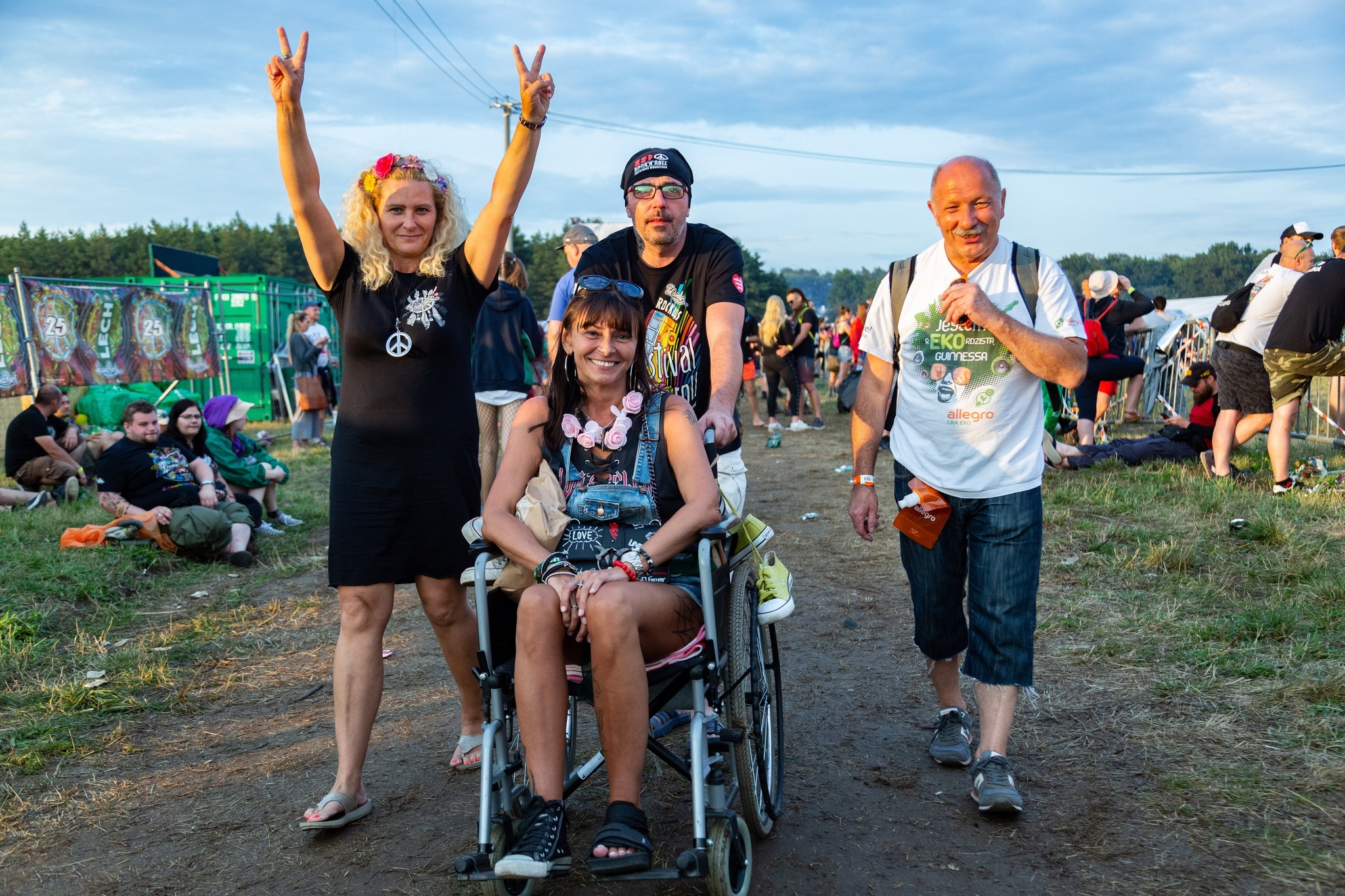 Może Tobie, tak jak mi wcześniej Woodstock kojarzył się z ostrym pogo i agresywnie nastawionymi panami z irokezami. Pogo owszem jest, ale wcale nie musisz brać w nim udział, z resztą nikomu kto brał w nim udział nic się nie stało. Agresji nie widział nigdzie, a na festiwalu było prawie 800 tys osób – to duże miasto. Był moment, że prawie popłakałam się ze wzruszenia. Tradycją jest, że na takich koncertach ludzi przenoszą ludzi na rękach przez tłum pod sceną, wygląda to fajnie i efektownie. Przeważnie „noszone” są dziewczyny. Zatkało mnie konkretnie, kiedy zobaczyłam wózek inwalidzki w górze. Tłum go podniósł i trzymał przez dłuższą chwilę.