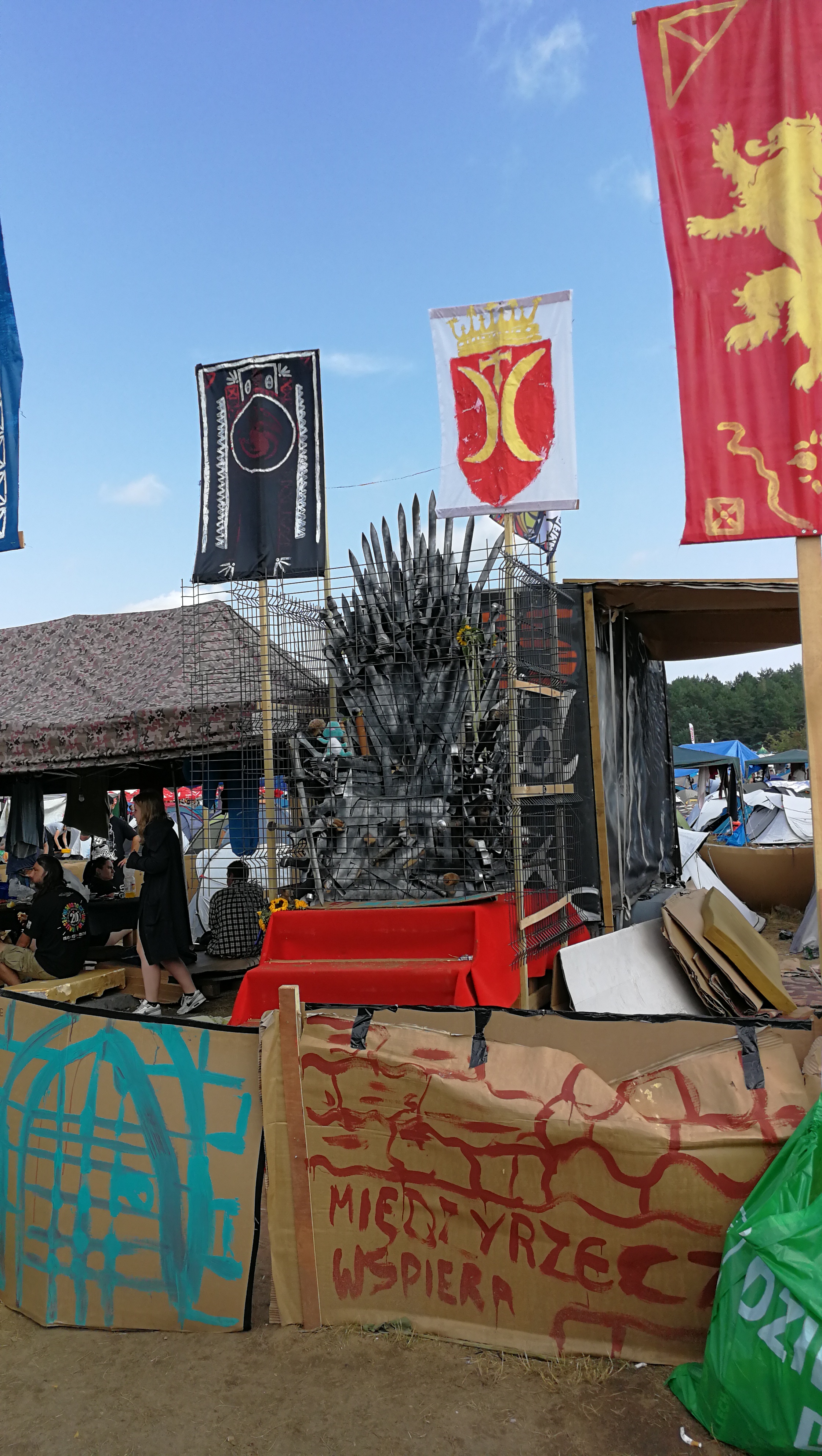 Warto pojechać wcześniej by zająć dobre miejsce na obozowisko na namioty. Większość festiwalowiczów zazwyczaj śmiesznie nazywa swój obóz i go przyozdabia, wieszając swoją własną flagę. Czasami jest to po prostu flaga miejscowości, z której przyjechali. Najciekawszy obóz był naprzeciwko głównej sceny. Grupa znajomych zrobiła istny zamek z serialu „Gra o Tron”. Miał wszystkie herby rodów i prawdziwy tron z mieczy. Naprawdę się napracowali.